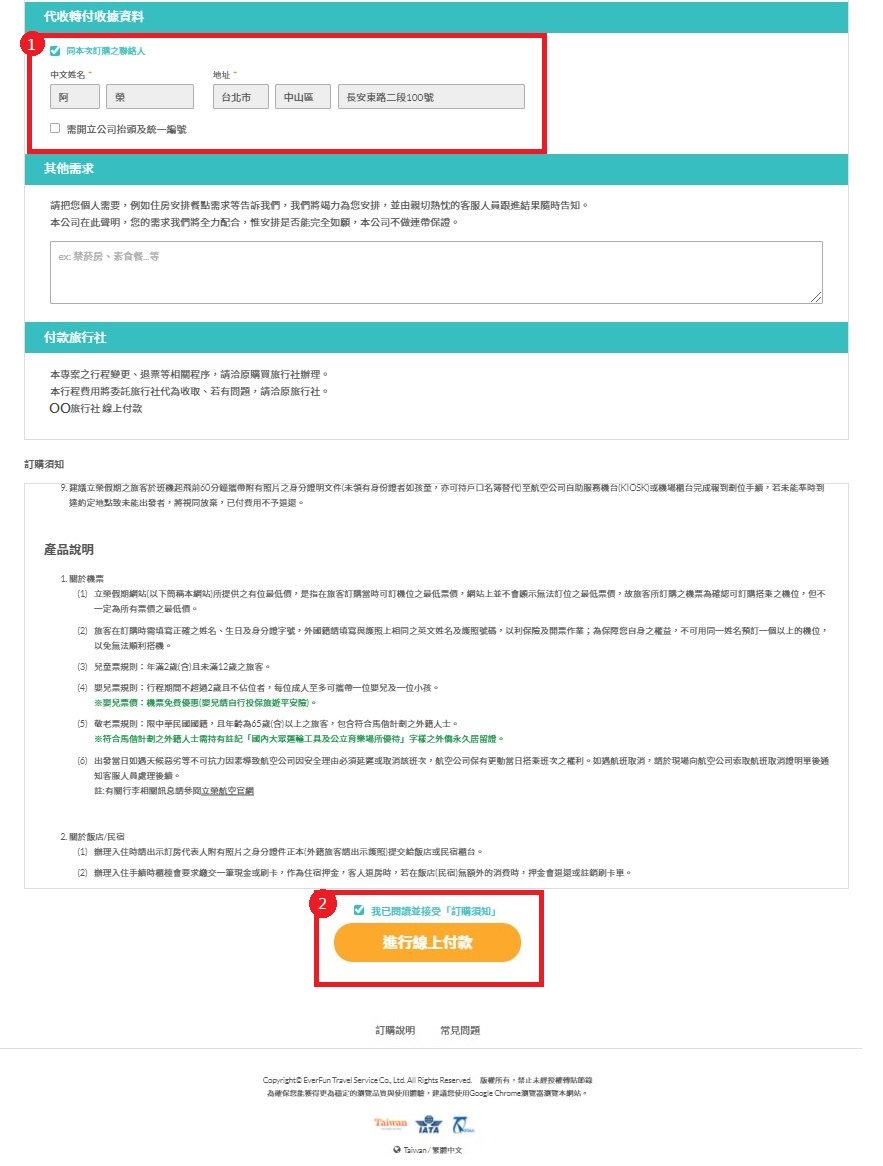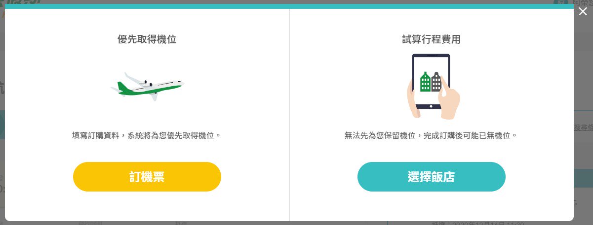 2. 選擇優先取得機位填寫訂購資料或先選擇飯店