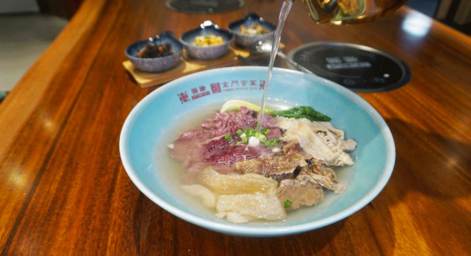 全台第一碗、世界第一鮮「鮮沖溫體酒糟牛肉麵」,創始人—圓頭,擁有30年養殖、加工、料理經驗,6年前獨家研發鮮沖吃法,顛覆金門酒糟牛美味!