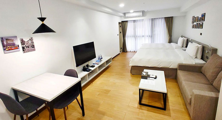 金金禮寓位在金湖鎮地點幽靜,鄰近昇恆昌廣場想購物或是看場電影,都很方便。超大客房設計,提供五星等級的客房禮賓服務,讓您在金門住宿,有如回到自己家一般舒適放鬆。