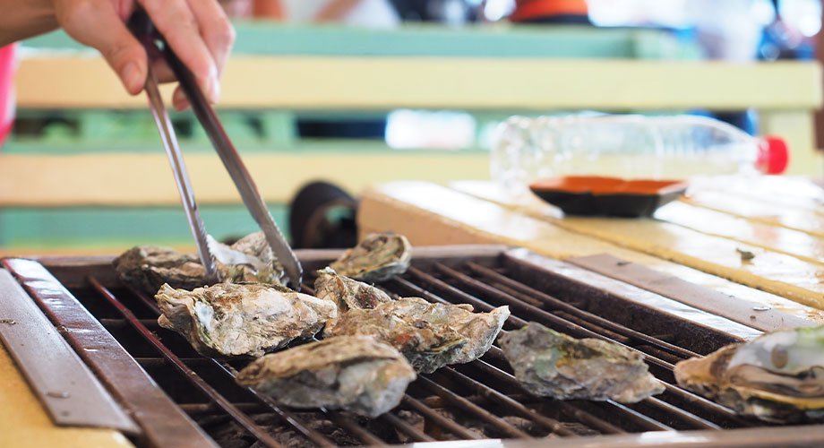 澎湖湛藍海面上的海上平台,藏著一場夏日海味體驗。炭火微熾,鮮蚵現烤無限供應,搭配熱騰騰的海鮮粥,最道地的海島風味。釣魚、餵花枝,海風與笑聲隨浪搖曳。