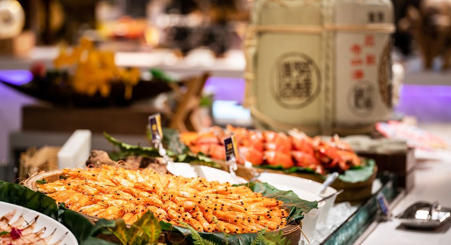 提供多國料理、澎湃海鮮及甜品等,並會依當令食材不定時更換菜色,此外也提供各式酒類喝到飽,賓客可依喜好搭配,用餐區寬闊舒適,提供輕鬆自在的用餐環境。