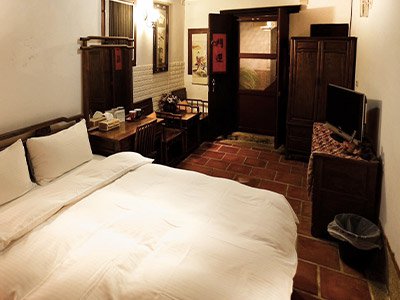 雙落雙護龍的古厝,民宿取自蘇東坡的詞,以詞曲字詞命名房間,現代式乾濕分離的衛浴,古色古香的花梨木傢俱,兼具傳統古樸與現代整潔明亮,是舒適溫馨的民宿。