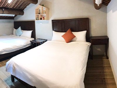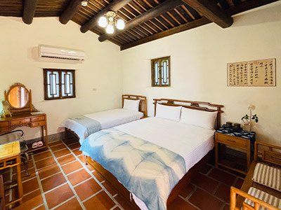 建於清朝年間,擁有現代化設備的古厝套房,廚房茶水間,金門書籍與繪本、咖啡機、無線網路、院子,共5間套房,適合親朋好友包棟,體驗古厝風情。