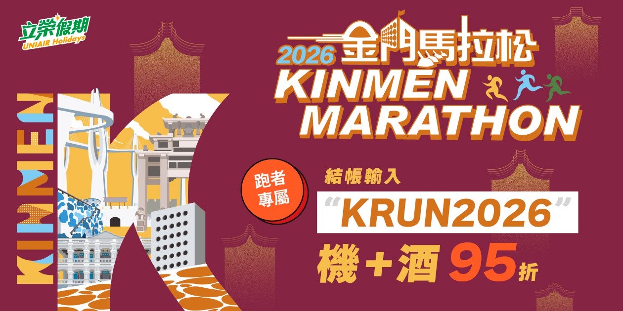 - 隨房提供一位馬拉松名額 (10K),物資宅配費另計。