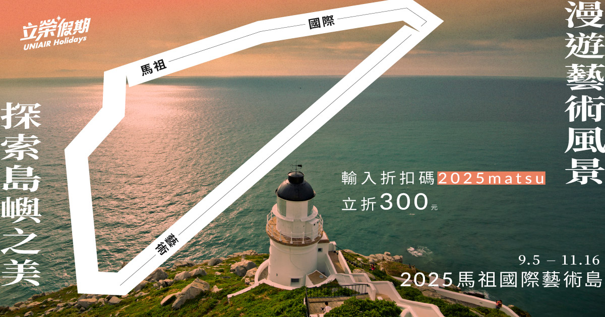 現在到立榮假期購買指定區間馬祖機加酒,結帳輸入「2025matsu」立折 300元 !