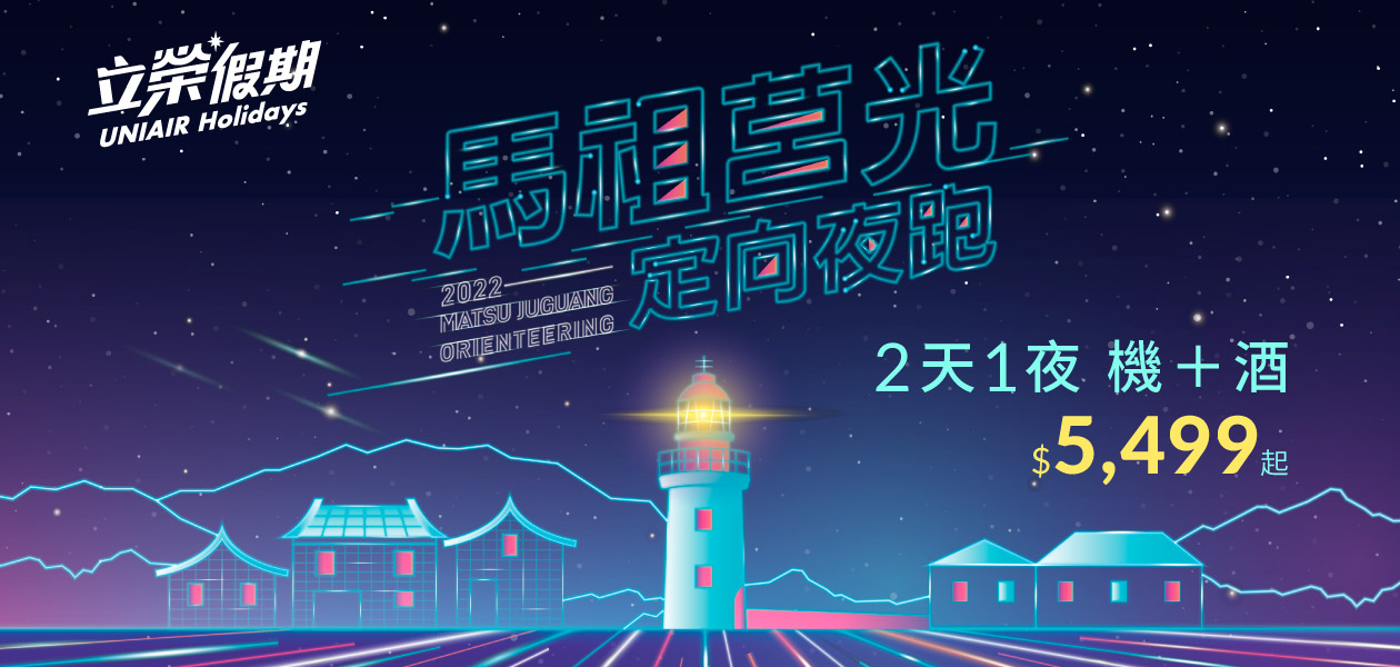 立榮假期馬祖機+酒2天1夜僅$5,499起,線上即時訂票訂房,省時又省力,是您賽前行程規劃最得力的好夥伴!