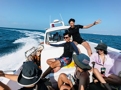 活動區間內加購『海陸優遊趣澎湖』、『澎湖市場導覽』、『敲敲魚乾體驗』、『魚拓壓壓體驗』、『魚標本製作體驗』,可享四人同行一人免費(限同天同場次)。