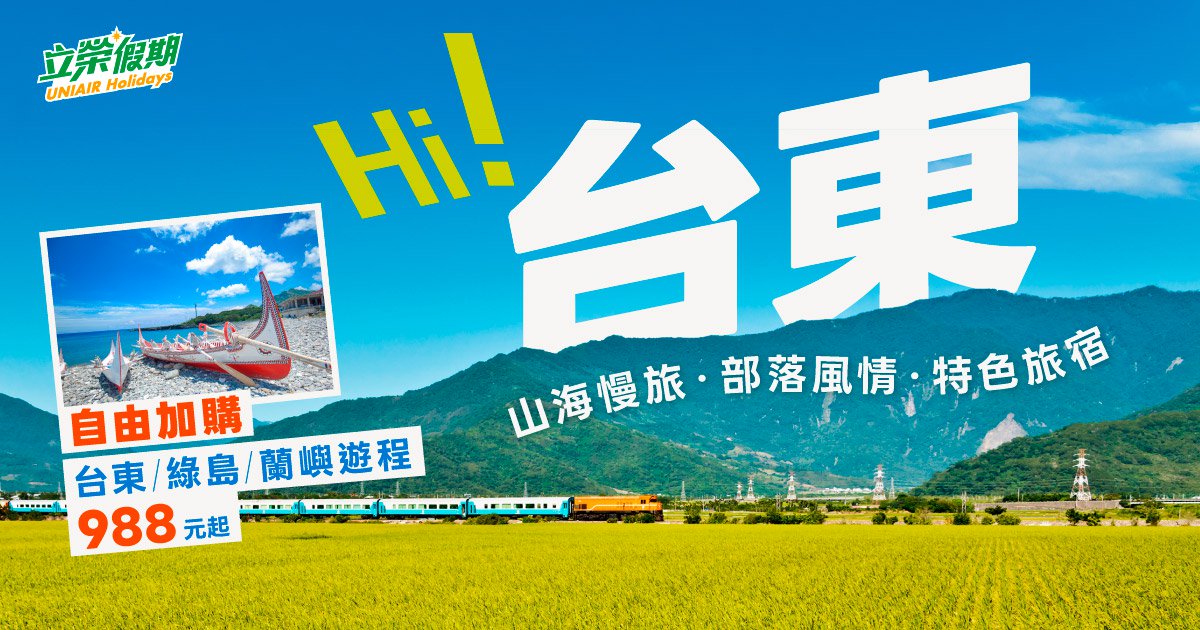 活動期間於「立榮假期」官網訂購台東指定出發區間機加酒,結帳時輸入專屬折扣碼「TTGD95」,立即享單筆95折優惠!